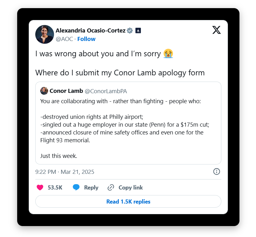 (318,091 posts)for the Senate in 2028.. I read on here that AOC has apologized to him.