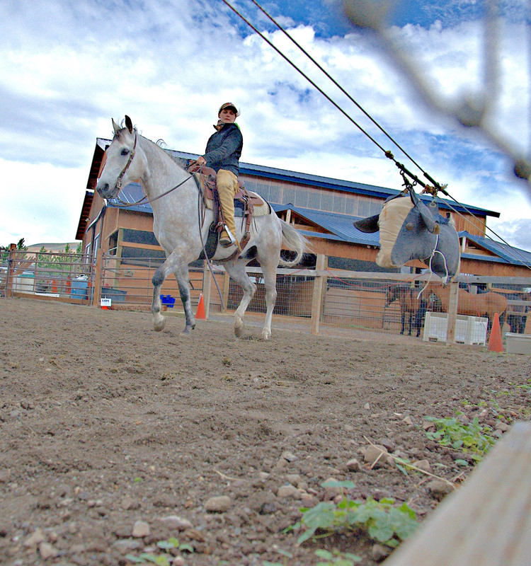 We held a few clinics in which riders' horses learned how to track a "cow", pulled up and down a fenceline.
