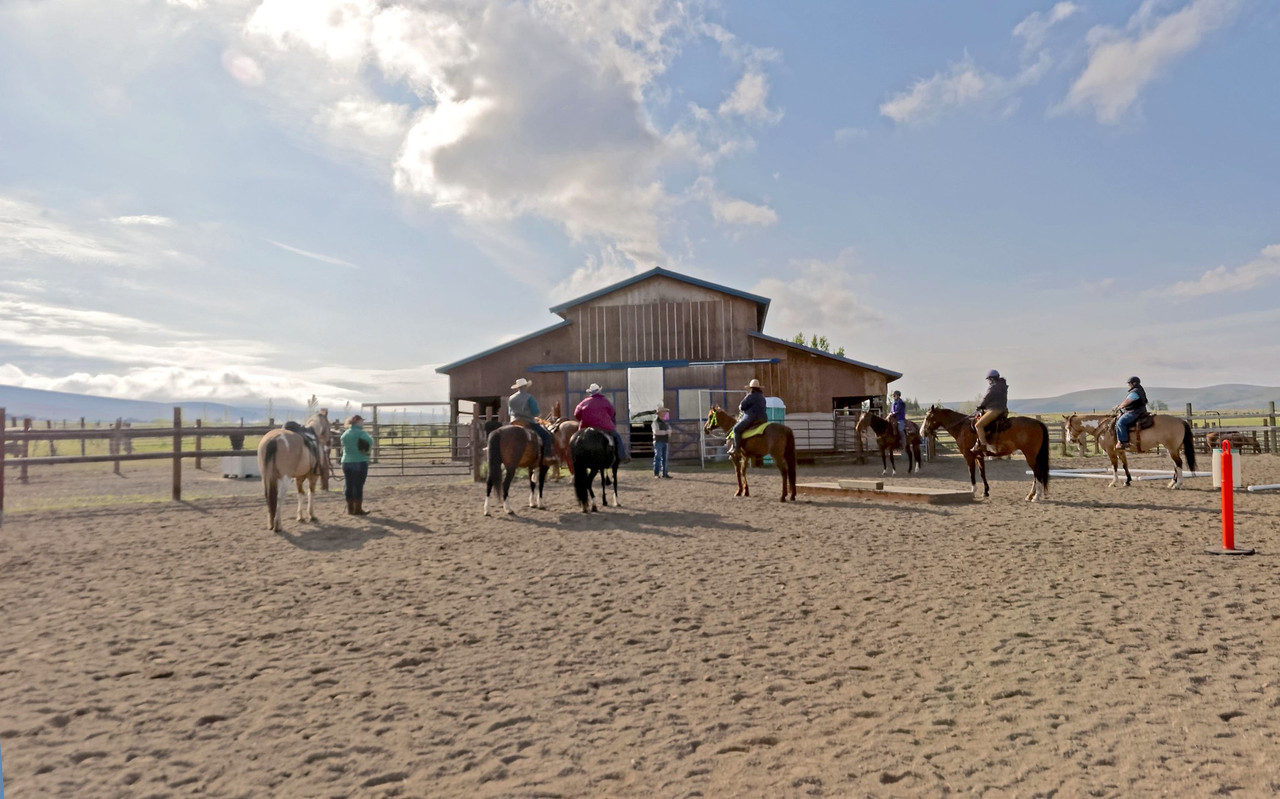 Clinic participants would warm up in the arena and then head out to the obstacle/trail course