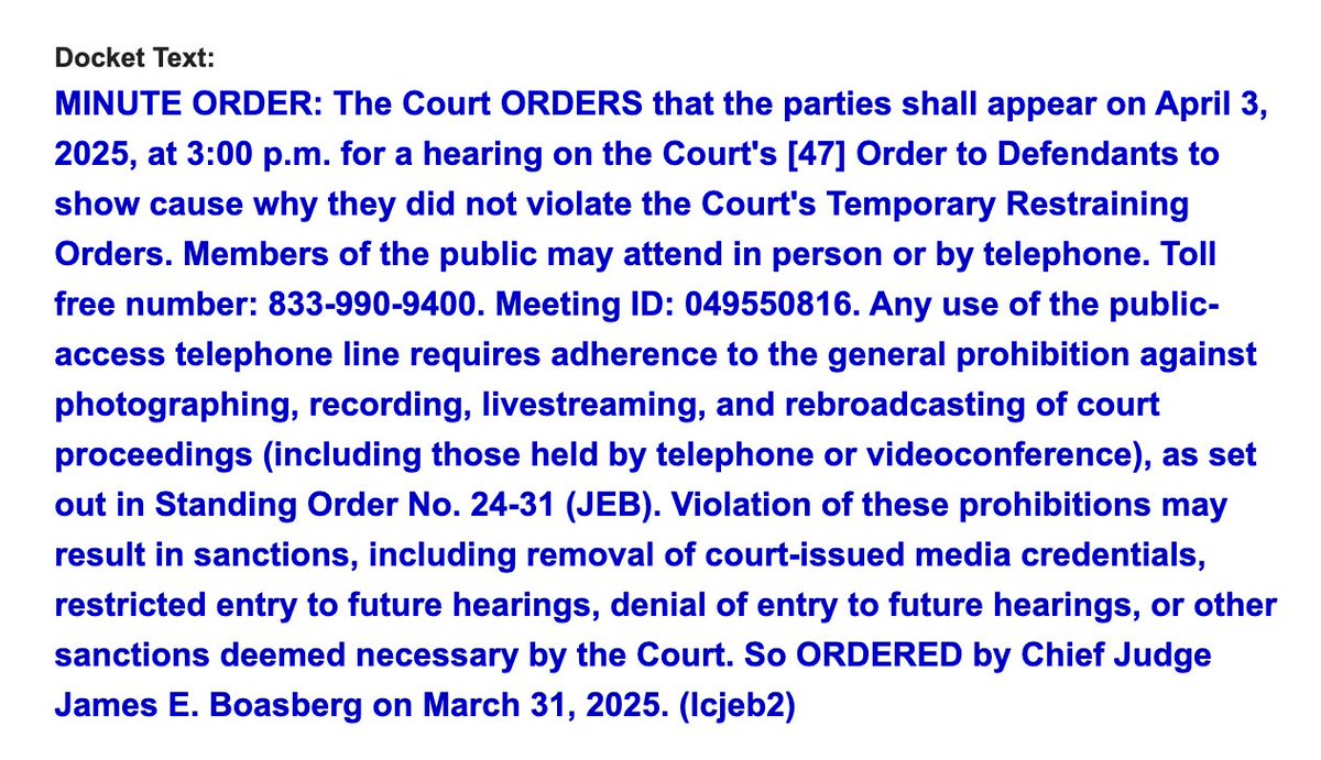 This judge has set a hearing on Thursday that will be fun LetMyPeopleVote Mar 2025 #1